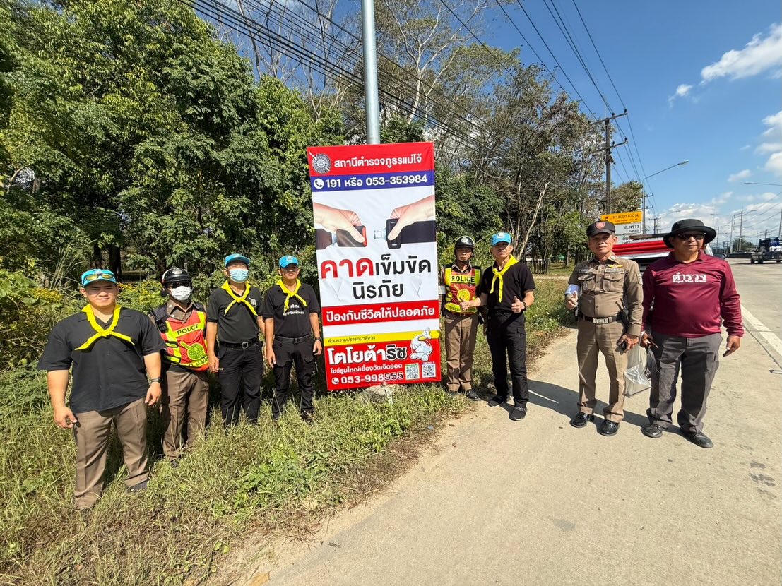 สภ.แม่โจ้ วันที่ 20 ธ.ค. 2568 โดยการอำนวยการของ พ.ต.อ. พลจักร บุนนาค ผกก.สภ.แม่โจ้, พ.ต.ท. ณัฐพงศ์ ส