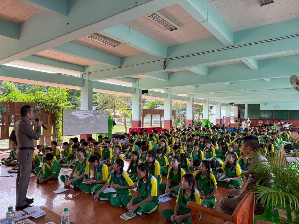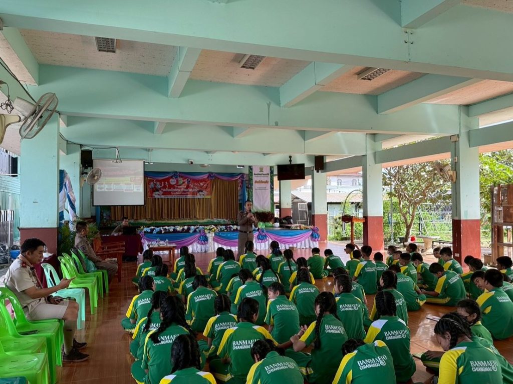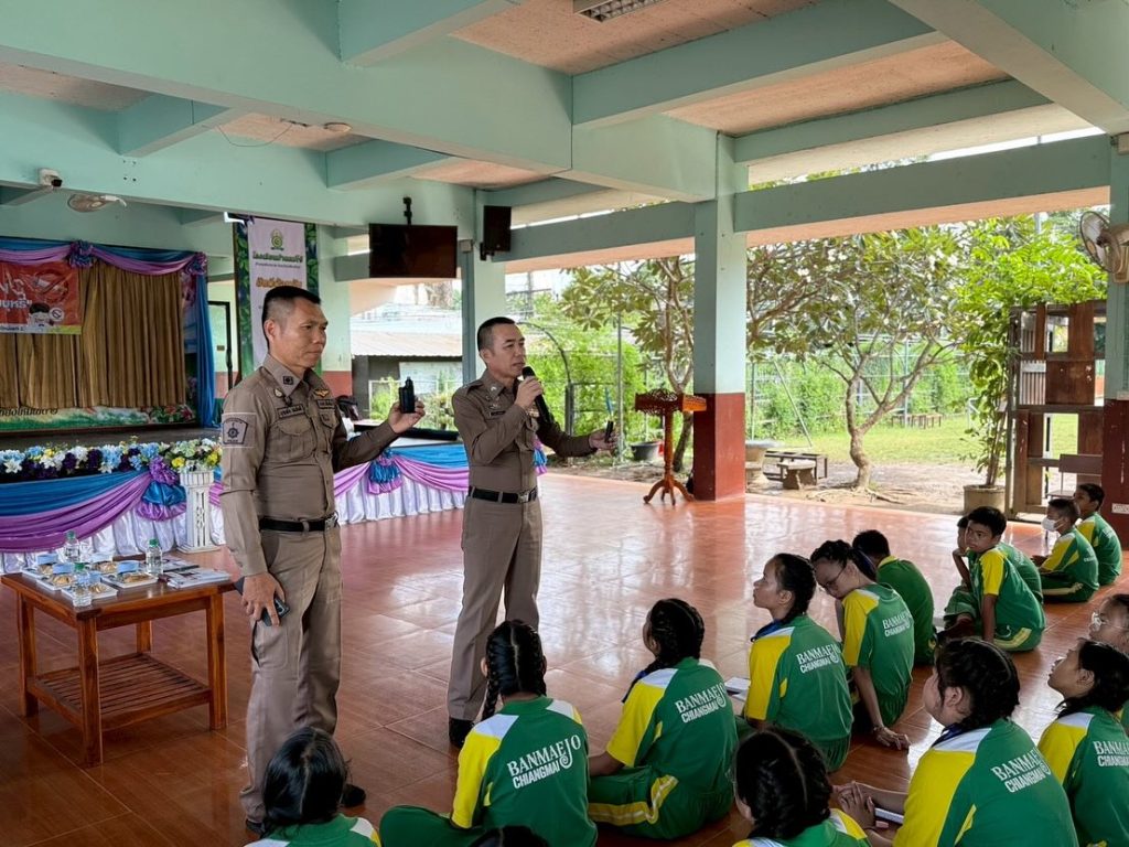 วันที่ 2 ต.ค.68 เวลา 09.00 น. โดยการอำนวยการของ พ.ต.อ.พลจักร บุนนาค ผกก.สภ.แม่โจ้, พ.ต.ท.วีรพงษ์ พึ่งเดชะ รอง ผกก.ป.สภ.แม่โจ้ มอบหมายให้พ.ต.ต.ถวิล กูลพรม สวป.(ชส.)สภ.แม่โจ้ พร้อมชุดชมส.สภ.แม่โจ้ บรรยายให้ความรู้ “เกี่ยวกับยาเสพติด บุหรี่ไฟฟ้า และกฎหมายเกี่ยวกับกัญชาและพืชกระท่อม” ณ โรงเรียนบ้านแม่โจ้ ต.หนองหาร อ.สันทราย จว.เชียงใหม่