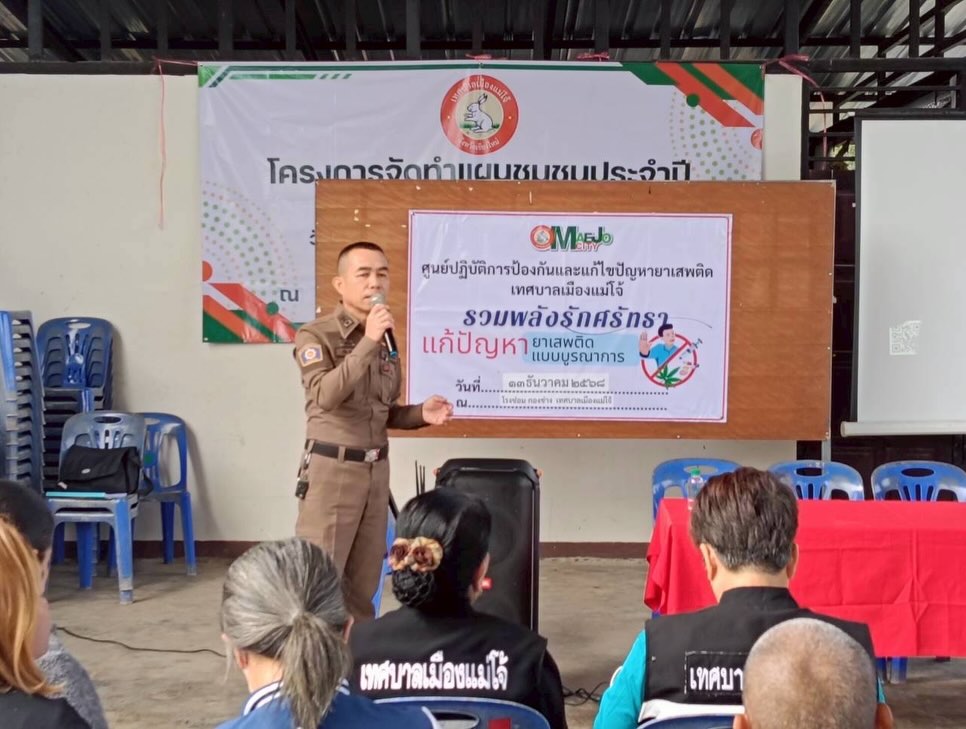 วันที่ 13 ธ.ค. 2568 เวลา 09.00 น.พ.ต.อ. พลจักร บุนนาค ผกก.สภ.แม่โจ้, พ.ต.ท. ณัฐพงศ์ สุขทาน รอง ผกก.ป.สภ.แม่โจ้ มอบหมายให้ พ.ต.ท. ถวิล กูลพรม สวป.(ชส.) สภ.แม่โจ้ พร้อมชุดชุมชนสัมพันธ์ สภ.แม่โจ้ ร่วมประชุมทบทวนแผนชุมชน โครงการกองทุนแม่ของแผ่นดิน และโครงการรวมพลังรักศรัทธาแก้ปัญหายาเสพติด ร่วมกับเทศบาลเมืองแม่โจ้ คณะกรรมการชุมชน และประชาชนชุมชนสหกรณ์นิคม 1 ม.5 ต.หนองหาร อ.สันทราย จ.เขียงใหม่
