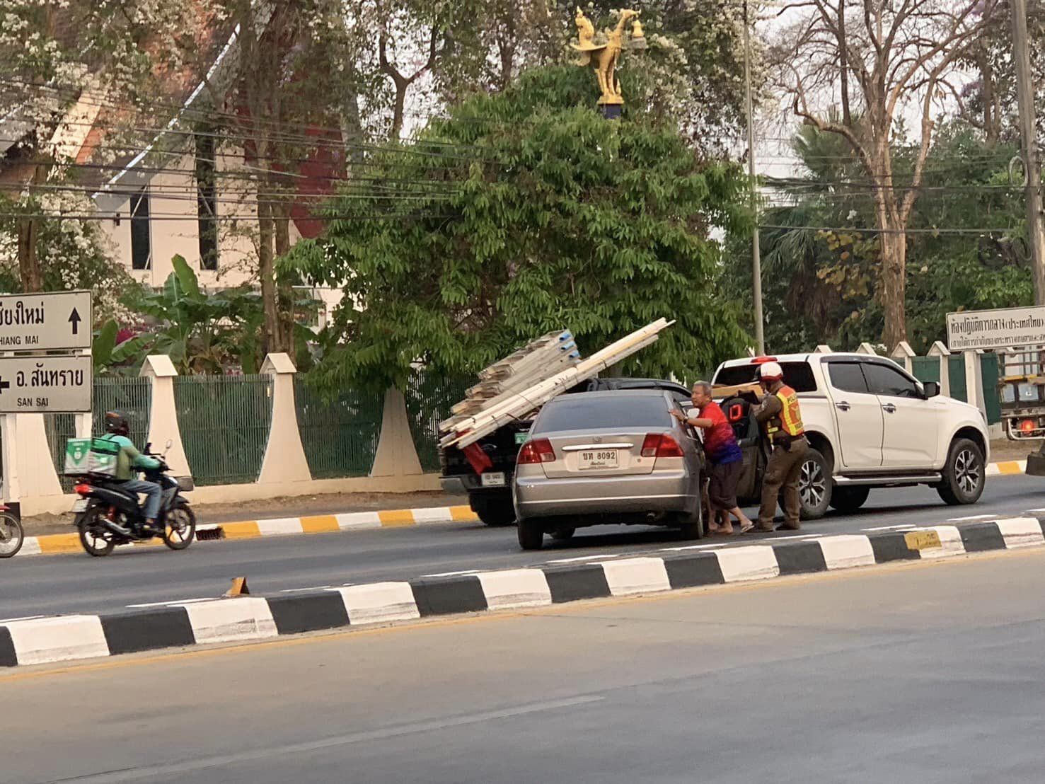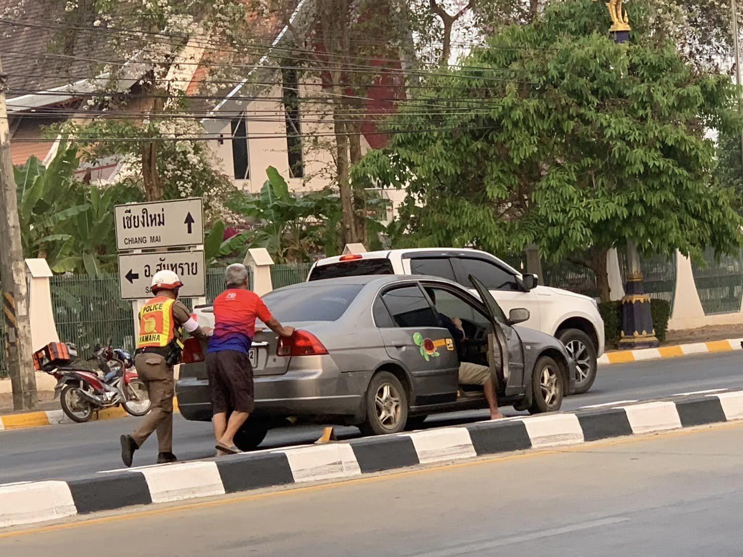 สภ.แม่โจ้ วันที่ 20 มี.ค.67 เวลา 08.20 น. เจ้าหน้าที่ตำรวจจราจร สภ.แม่โจ้ พบเห็นรถยนต์จอดเสียบนถนน บริเวณหน้า ม.แม่โจ้ จึงเข้าช่วยเหลือเข็นรถเข้าข้างทางเพื่อไม่ไห้กีดขวางการจราจร และติดต่อช่างเข้ามาช่วยเหลือต่อไป
