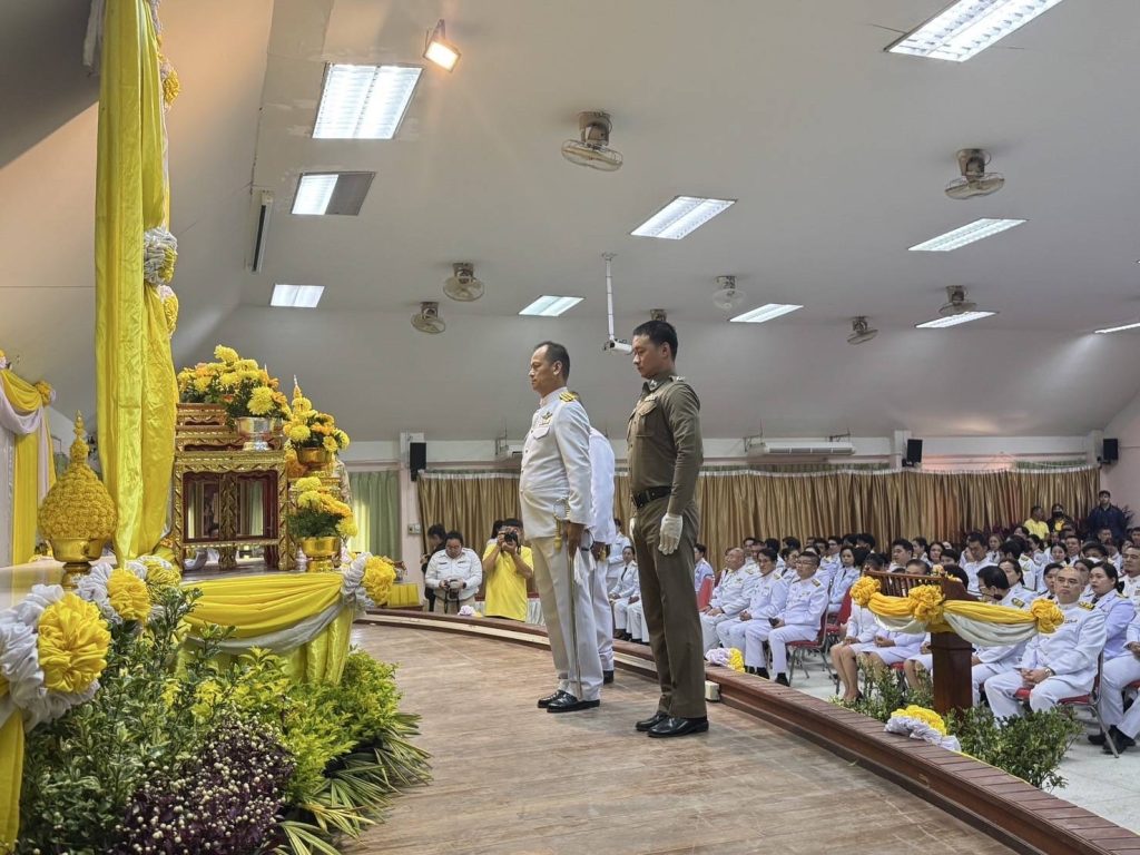 วันที่ 5 ธ.ค.67 เวลา 07.00 น. พ.ต.อ.นฤบาล จิตทยานันท์ ผกก.สภ.แม่โจ้ พร้อมข้าราชการตำรวจ สภ.แม่โจ้ รวม 4 นาย ร่วมพิธีวันคล้ายวันพระบรมราชสมภพพระบาทสมเด็จพระบรมชนกาธิเบศรมหาภูมิพลอดุลยเดชมหาราชบรมนาถบพิตร วันชาติและวันพ่อแห่งชาติ ในวันพฤหัสบดีที่ 5 ธันวาคม 2567 ณ ที่ว่าการอำเภอสัยทราย จว.เชียงใหม่