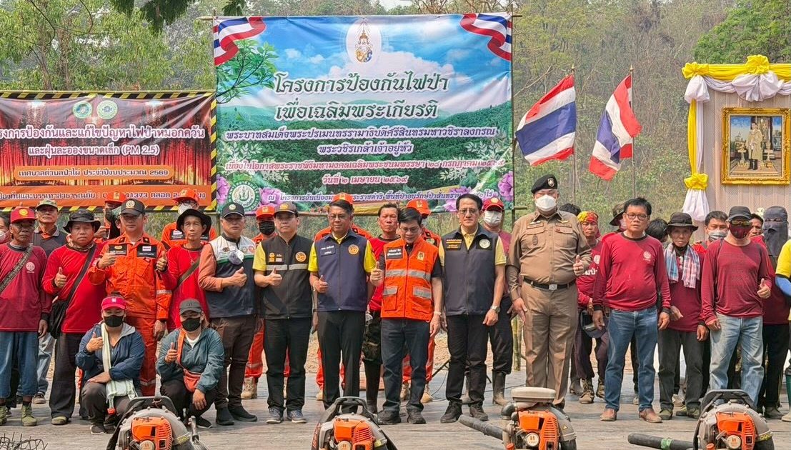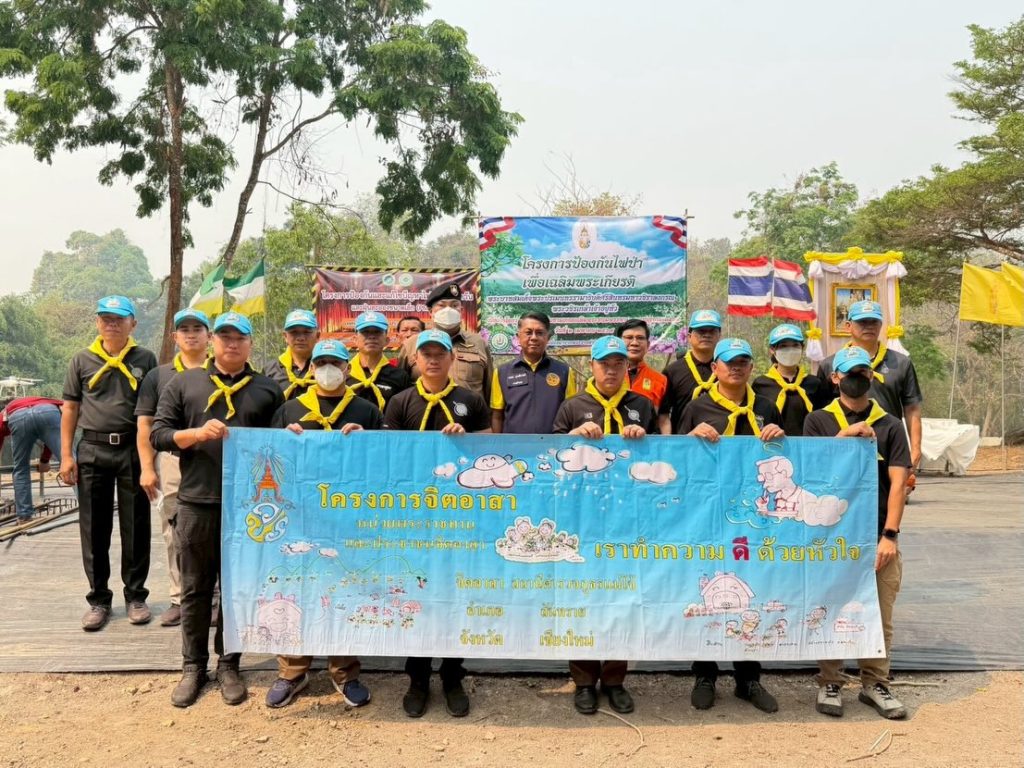 วันที่ 2 เม.ย.69 เวลา 09.40 น. พ.ต.อ.พลจักร บุนนาค ผกก.สภ.แม่โจ้ ,พ.ต.ท.ถวิล กูลพรมและ พ.ต.ต.หญิงวิราวรรณ สุนันตา สว.อก.สภ.แม่โจ้ นำข้าราชการตำรวจชุดจิตอาสา สภ.แม่โจ้ ร่วมกับ สำนักฟาร์มมหาวิทยาลัยแม่โจ้, เทศบาลตำบลป่าไผ่ นักศึกษา ประชาชนและหน่วยงานในพื้นที่ จัดกิจกรรม “โครงการป้องกันไฟป่าเพื่อเฉลิมพระเกียรติ พระบาทสมเด็จฯพระวชิรเกล้าเจ้าอยู่หัว เนื่องในวโรกาสพระราชพิธีมหามงคลเฉลิมพระชนมพรรษา 28 ก.ค.69 ณ โครงการอันเนื่องมาจากพระราชดำริ พื้นที่ป่าอนุรักษ์ป่าสันทราย 3,840 ไร่ ตำบลป่าไผ่ อำเภอสันทราย จังหวัดเชียงใหม่ โดยมีนายนพดล สุระสังวาลย์ นายอำเภอสันทรายตัวแทนผู้ว่าราชการจังหวัดเชียงใหม่ เป็นประธาน