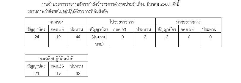 งานอำนวยการรายงานอัตรากำลังข้าราชการตำรวจประจำเดือน มีนาคม 2568