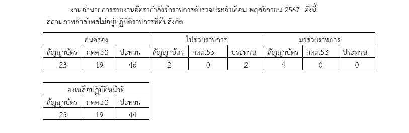 งานอำนวยการรายงานอัตรากำลังข้าราชการตำรวจประจำเดือน พฤศจิกายน 2567